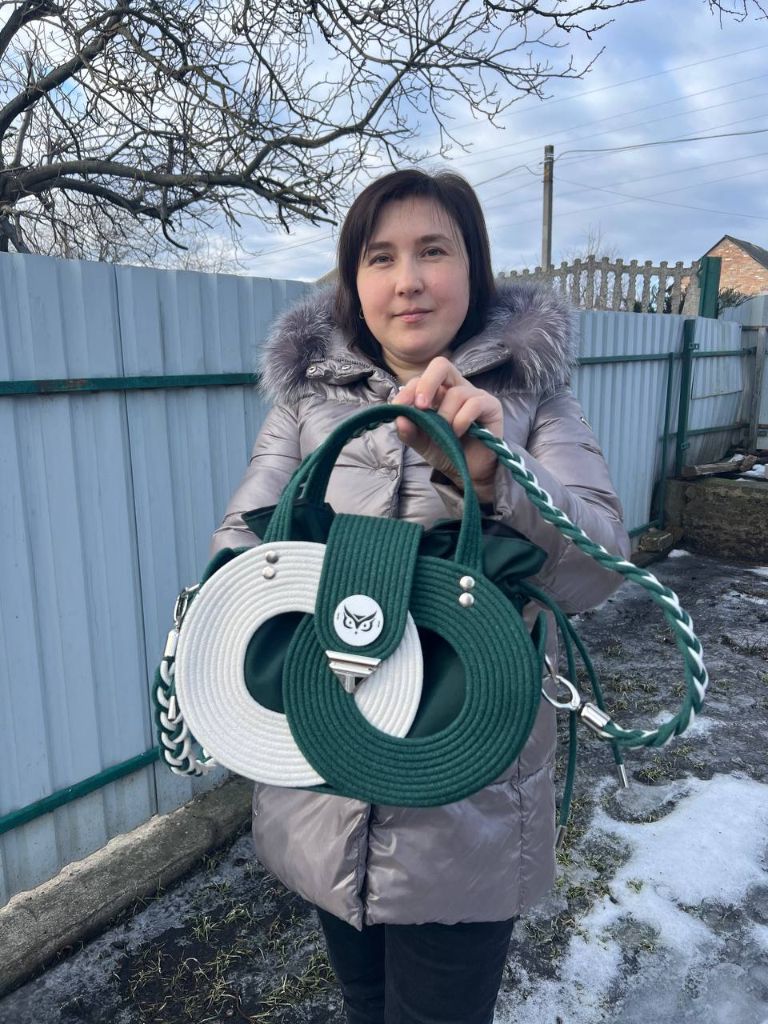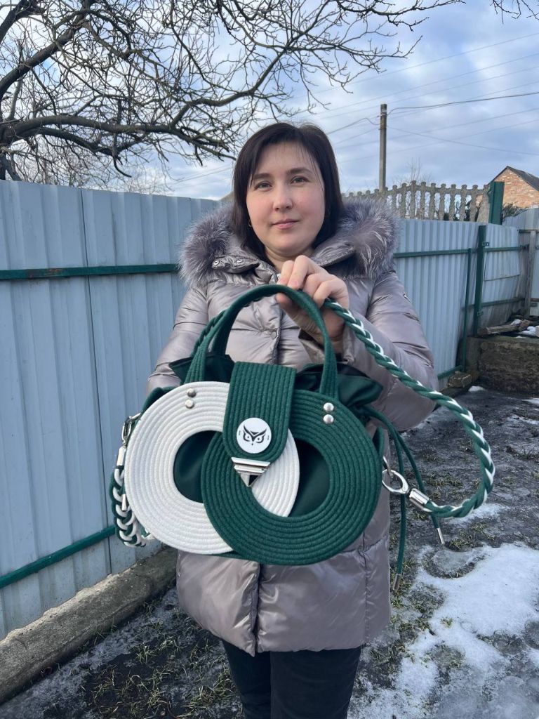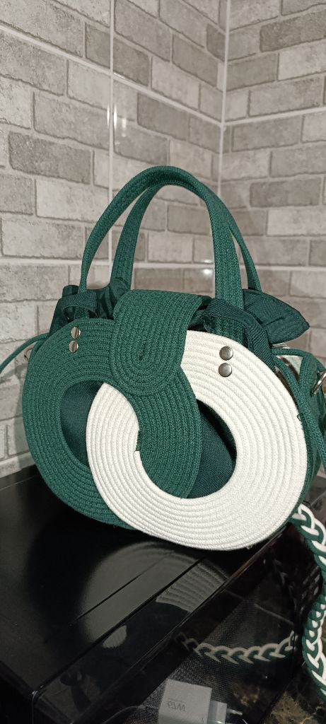 Сумка ручної роботи зі шнура. Колір смарагд+айворі. Внутрішня сумочка зроблена у вигляді торбинки на затяжках з матеріалу саржа і габардин. Ремінець плетений. Фурнітура срібло. Ідеальний варіант для весна-літо. Приймаю замовлення на виготовлення сумок