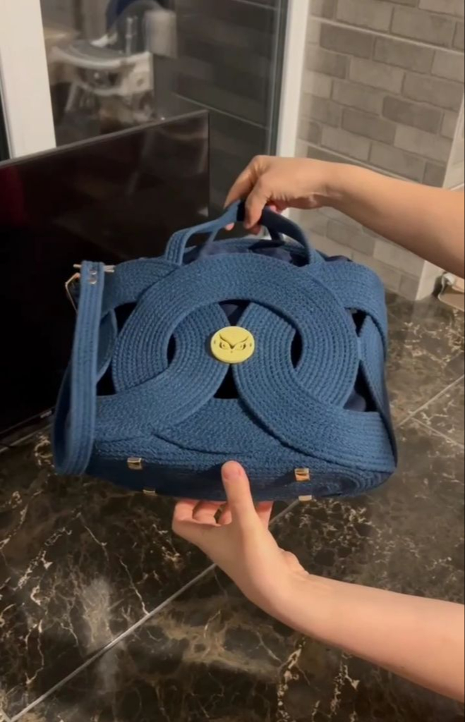 Продаю сумку ручної роботи, виготовленої зі шнура. Колір: синій. Внутрішня сумочка зроблена у вигляді знімної торбинки на затяжці( матеріал габардин і саржа). Присутня фурнітура під золото. Є плечовий ремінець. Розмір сумочки 31×24 см. Також приймаю замовлення на виготовлення вашого варіанту.